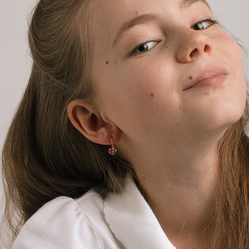 Красное золото 585 пробы отличается мягким тёплым оттенком и гипоаллергенными свойствами, что особенно важно для детских украшений. Полированная поверхность придаёт изделию деликатное сияние и аккуратный внешний вид.