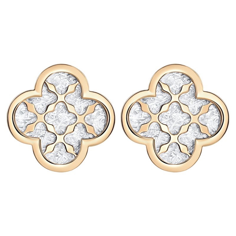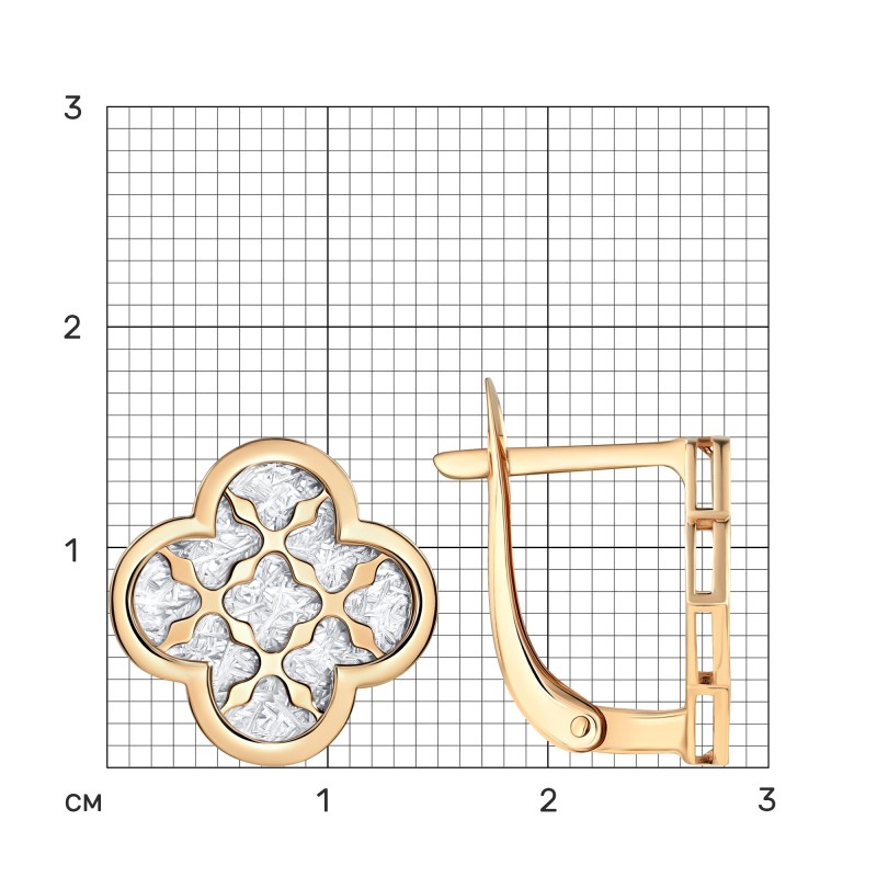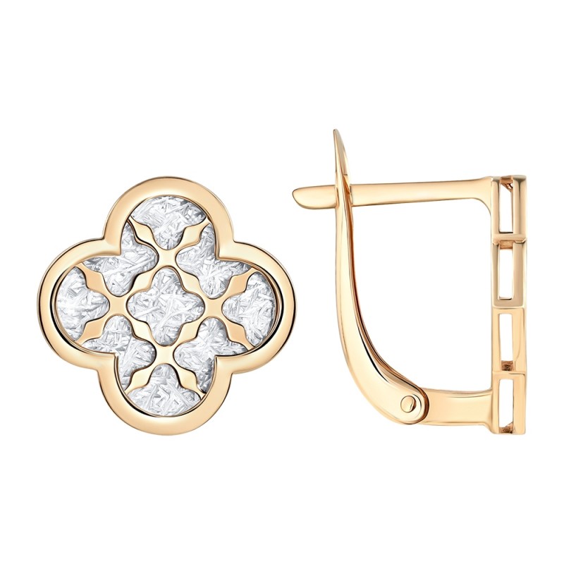 Ohrringe Russisches Gold 585. Diese Ohrringe zeigen sich in einer eleganten Vierblatt-Form, die Harmonie und feine Ästhetik vereint. Die sanften Konturen aus 585