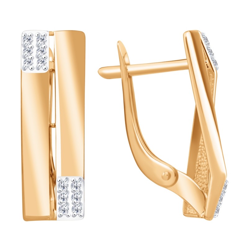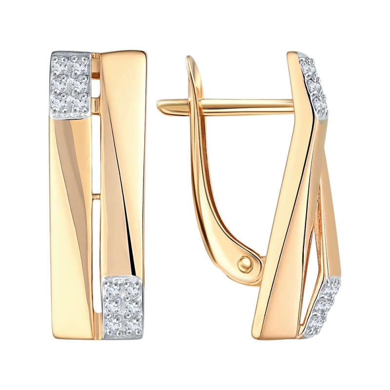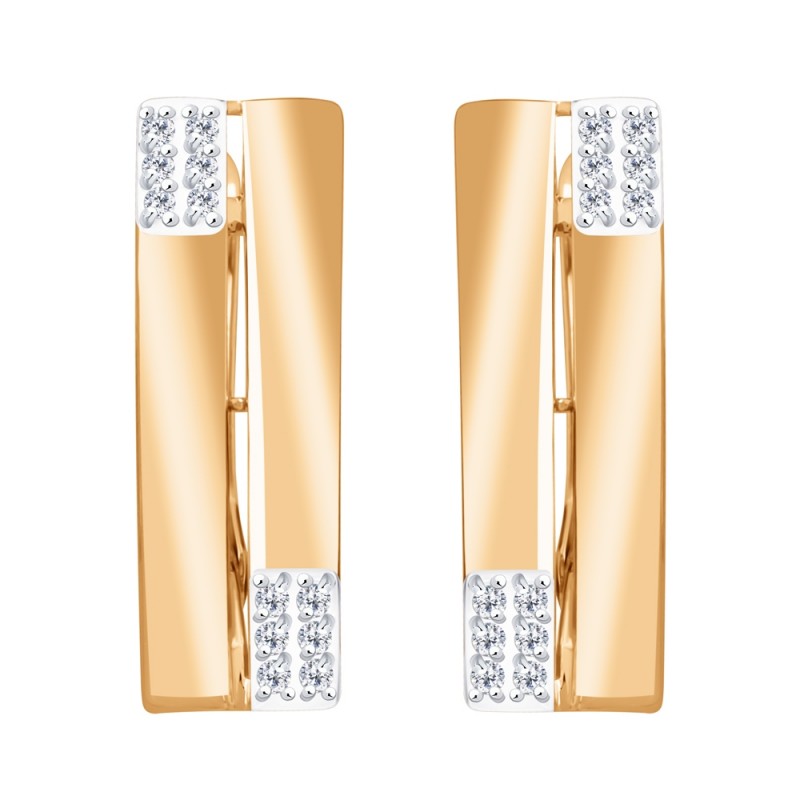 Rotgold 585 Zirkonia. Diese Ohrringe stehen für moderne Eleganz und klare Formensprache. Die längliche, leicht geschwungene Silhouette aus 585