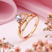 красного золота 585 пробы — это утончённая композиция, в которой лёгкость формы встречается с чистотой цвета. Плавные, пересекающиеся линии создают ощущение движения и визуальной глубины, словно дизайн разворачивается в пространстве, мягко обрамляя центральный камень.