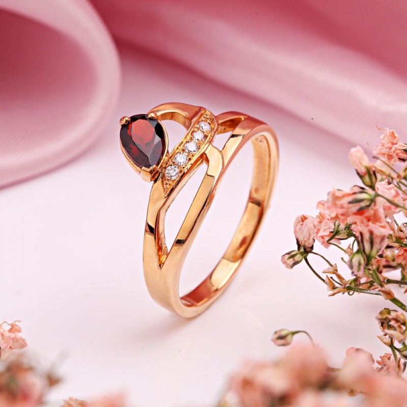 гранат пироп насыщенного винно-красного оттенка в элегантной грушевидной огранке. Его цвет живой и глубокий: при движении он словно «играет», раскрывая новые оттенки от тёплого алого до благородного бордо.