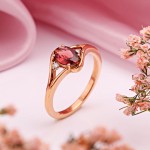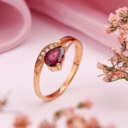 Красное золото мягко обрамляет композицию, делая цвет родолита ещё более насыщенным и тёплым. В результате кольцо выглядит элегантно, выразительно и по-настоящему благородно.