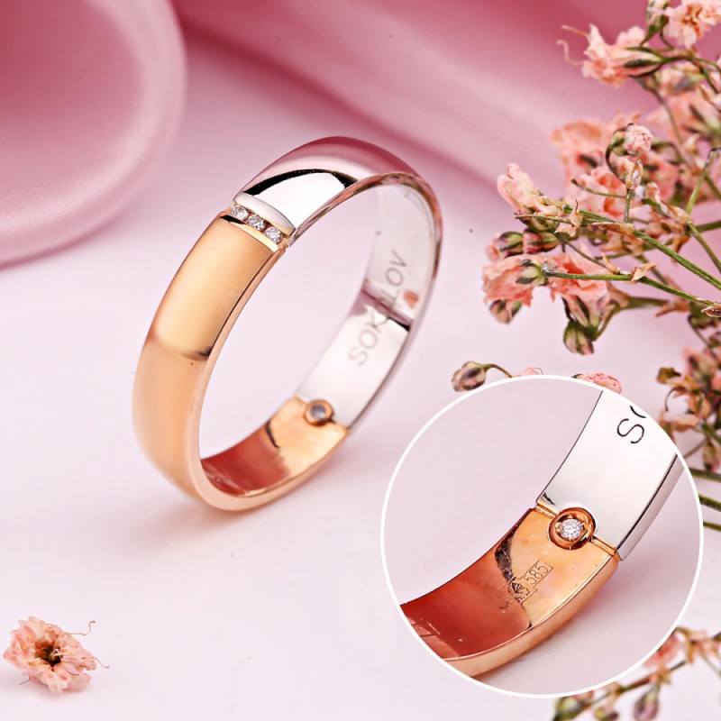 Красное золото 585 отличается насыщенным тёплым оттенком и высокой прочностью, что делает его идеальным для повседневного ношения. Частичное