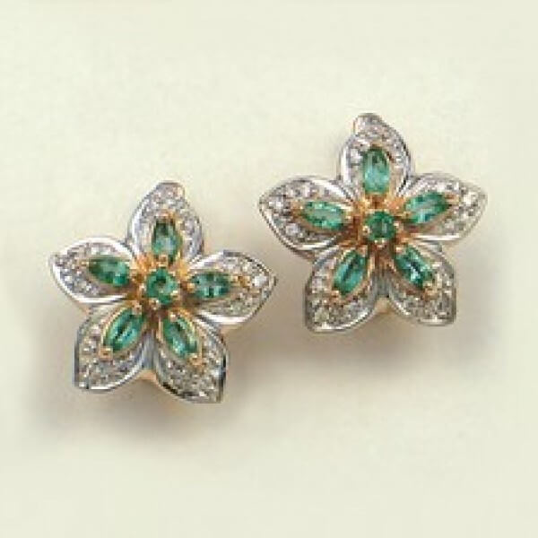Goldohrringe mit Brillanten & Smaragden