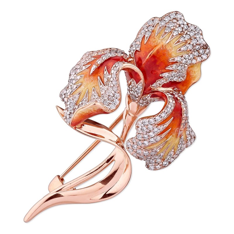 Silberbrosche  sind ein ergreifend schönes und multifunktionales Zubehör. Goldene russische Brosche  trägt in sich die bedeutende dekorative Funktion, den individuellen Stil erfolgreich betonend. Broschen aus dem rotgold schmücken den Kragen der Bluse, die Ränder des Umschlagtuches, die Aufschläge, die Jacken ohne Knöpfe harmonisch. Ausgezeichnet wird eine goldene Brosche  gesehen, wenn die  in einem mit  den Stil des Ohrringes oder den Ring ertragen.