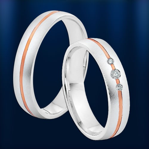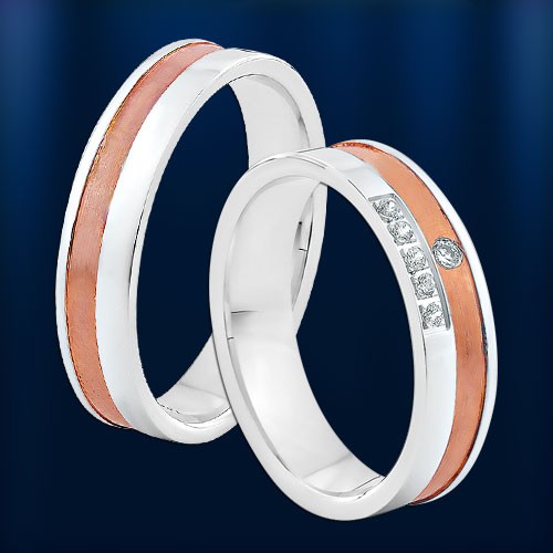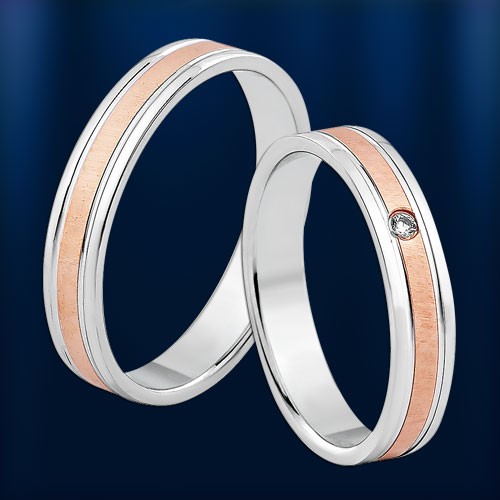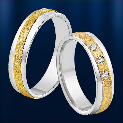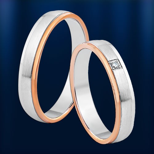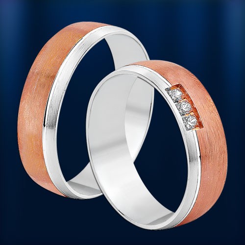 In dieser Sammlung sind vielfarbige Eheringe weit verbreitet - die einfachsten von ihnen sind zwei Goldstreifen in verschiedenen Farben. Aber Sie können ein Modell wählen und interessanter, mit Original-Geflecht und Muster, mit Diamanten - Steine können durch eine kleine Streuung, Original-Muster dargestellt werden, oder ein großer Stein kann den Ring schmücken.
