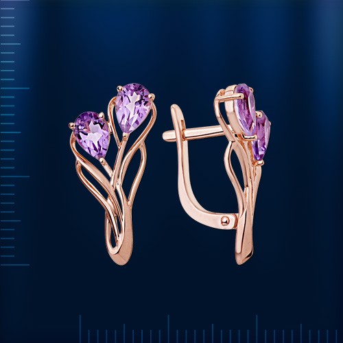 Goldohrringe mit Amethyst - der wunderschöne Amethyststein ist die teuerste Quarzsorte. Er wird seit der Antike geschätzt und nach biblischen Beschreibungen als einer von 12 Edelsteinen in die Brust des Hohepriesters Aaron eingesetzt. Die Hauptfarbe des Amethysts ist Lila in vielen Schattierungen. Moderne Forscher glauben, dass diese wunderbare Farbe eine Folge der Wirkung organischer Substanzen ist und nicht, wie bisher angenommen, eisenhaltiger Verunreinigungen. Die Farbpalette natürlicher Amethyste ist breit gefächert – von blassem Lila bis hin zu satten blauroten Farben. Amethyst-Schmuck soll Ihnen beim Schlafen helfen, wenn er nachts unter Ihr Kissen gelegt wird. Doch diese wunderschönen Schmuckstücke hätten ein besseres Schicksal verdient. Sie müssen getragen werden, um Spaß zu haben und anderen die Möglichkeit zu geben, sich an ihrer Schönheit zu erfreuen. Goldohrringe, Goldringe oder anderer Schmuck mit Amethyst passen zu den anspruchsvollsten Outfits.