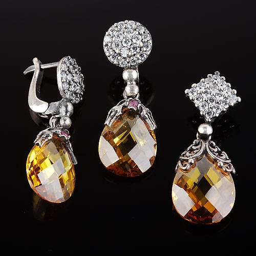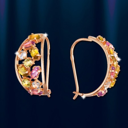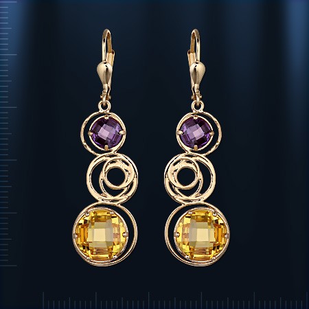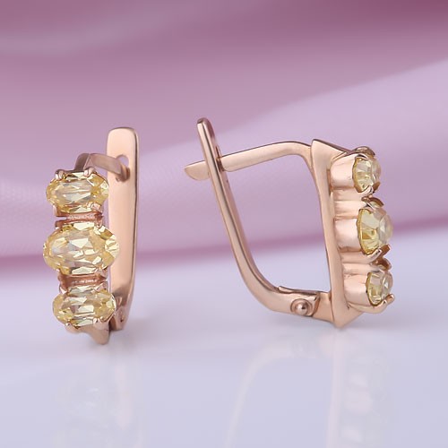Goldohrringe mit Zitrin ist eine stilvolle und anmutige Dekoration mit Kristallen in Gold, Cognac und Bronze. Citrin ist ein Halbedelstein und kommt in der Natur eher selten vor. Samozvet ist eine Art Quarz mit einer Farbe von Zitronengelb bis Bernstein-Honig. Wenn es erhitzt wird, kann es seine Farbe zu einer gesättigteren ändern. Im Schmuckgeschäft werden in der Regel transparente, intensiv gefärbte Steine ohne Mängel verwendet. Citrin sieht in jedem Rahmen großartig aus. Es wird normalerweise in Edelmetalle gerahmt: Silber, Platin, Gelb-, Weiß- und Rotgold. Das 585  Rotgold ist ein idealer Rahmen für Edelsteine. Je nach Modell unterscheiden sich goldene Ohrringe mit Citrin auch in der Form des Schnitts: Es kann Diamant oder kombiniert sein.