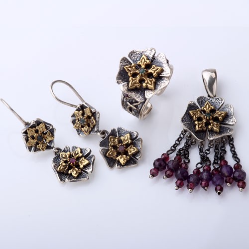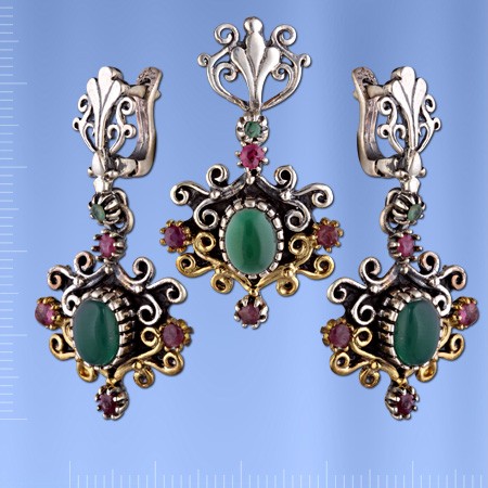 Silberset "Goelistan". Granat & Smaragd