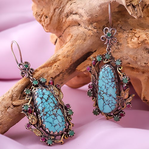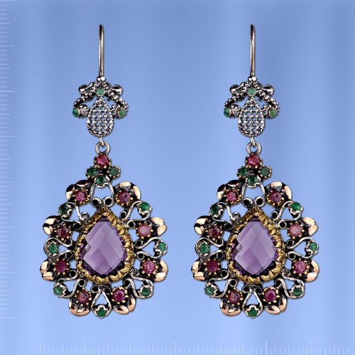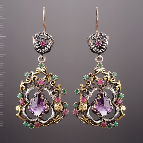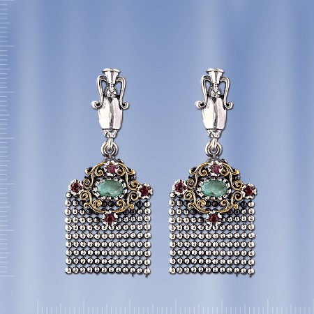 Ohrringe mit Rubin & Smaragd. Silber