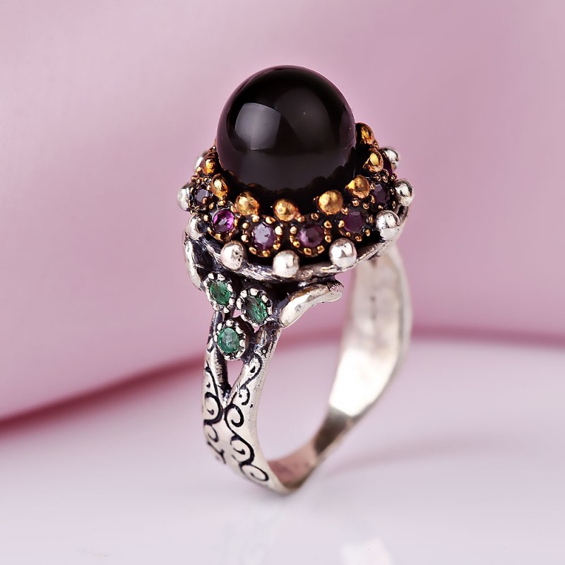 Kaufen Sie einen Silberring mit Achat - und jeder Silberring mit Achatstein hat seinen eigenen Farbton. Eines der häufigsten Mineralien auf dem Planeten zeichnet sich durch viele Gesichter aus. Der Grund für die Farbinterpretationen liegt in der chemischen Formel des Edelsteins. Es enthält mehrere Unterarten von Quarz und Chalcedon, so dass die Palette des Steins von transparent und zart weiß bis schwarz-braun reicht.