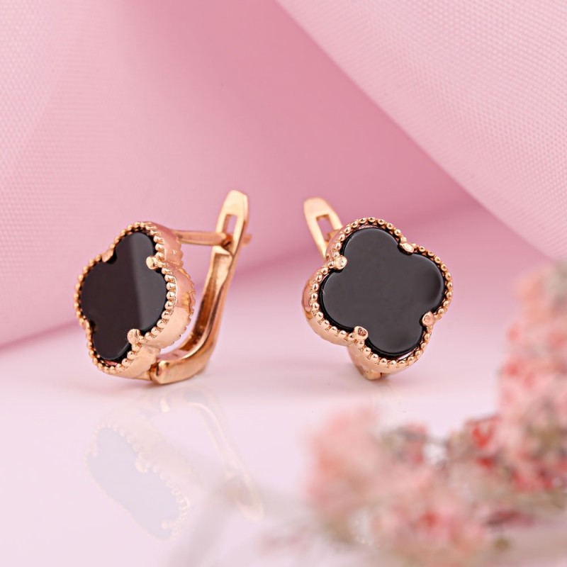Goldohrringe mit Onyx - Onyx ist eine Chalcedon-Sorte von Quarz, die für ihre außergewöhnliche gestreifte Farbe berühmt ist. Bei genauem Hinsehen können Sie sehen, wie sich im Mineral die in verschiedenen Farbtönen gefärbten Schichten, die sich aufgrund des Gehalts an mehrfarbigen Verunreinigungen (z. B. Kupfer und Eisen) bilden, auf interessante Weise verflechten. Der geheimnisvolle Stein bildet sich in den Thermalquellen streng unter bestimmten Bedingungen der Feuchtigkeit und der Temperatur, deshalb seine Vorräte in der Welt nehmen schnell ab. Dies erklärt die Popularität von goldenen Ohrringe mit Onyx unter den Fans von nicht-trivialen Schmuck, nicht wie der Rest.