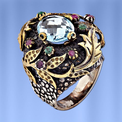 Кольцо серебряное с топазом. Рубины & Изумруды